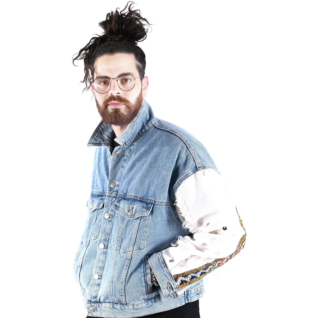 Berber jeans jacket handmade for unisex decorated with a natural Amazigh dress that expresses North African culture